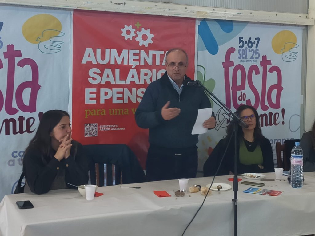 – A necessidade de outra política, uma política que promova o aumento dos salários e das pensões, que acabe com o problema do acesso à habitação, aumente o investimento nos serviços públicos, porque mais SNS, mais creches e mais pré-escolar gratuitos para todas as crianças são precisos;